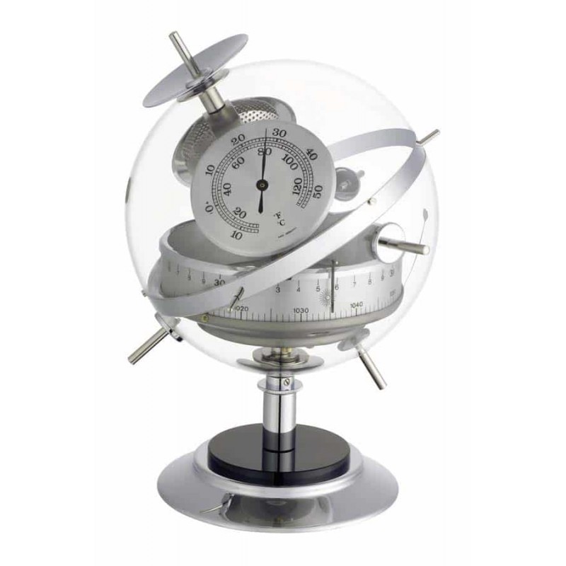 De vorm van het weerstation is geïnspireerd door de sateliet 'de Sputnik'. In de plexiglazen bol is een thermo-, hygro- en barometer aanwezig. De bol op de verchroomde voet is draaibaar.,