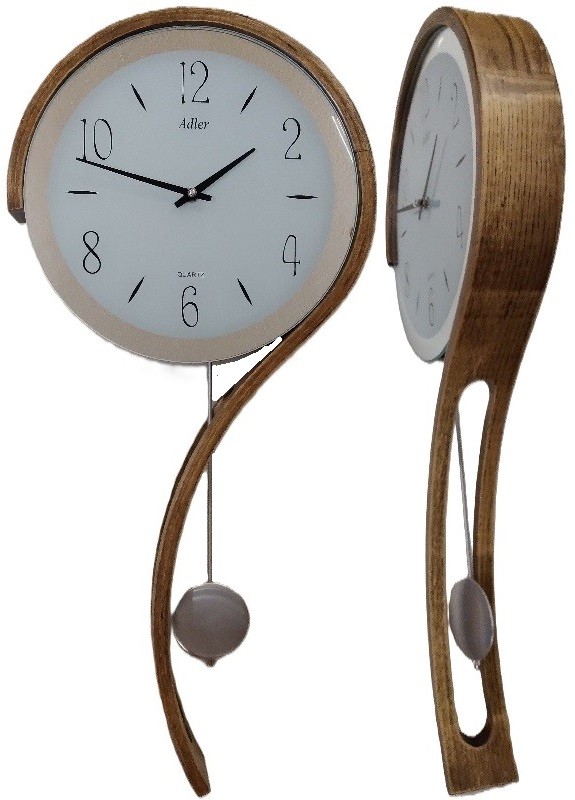 Eiken wandklok heeft een quartz uurwerk met een verchroomde slinger. De witte glazen wijzerplaat heeft een hoogglans chromen rand. Inclusief gratis batterijen