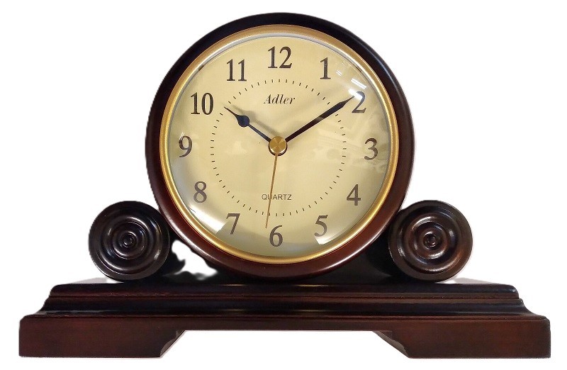 Het noten tafelklok heeft een quartz uurwerk met secondewijzer. De wijzers worden beschermd door een bol glas. Inclusief gratis batterij.