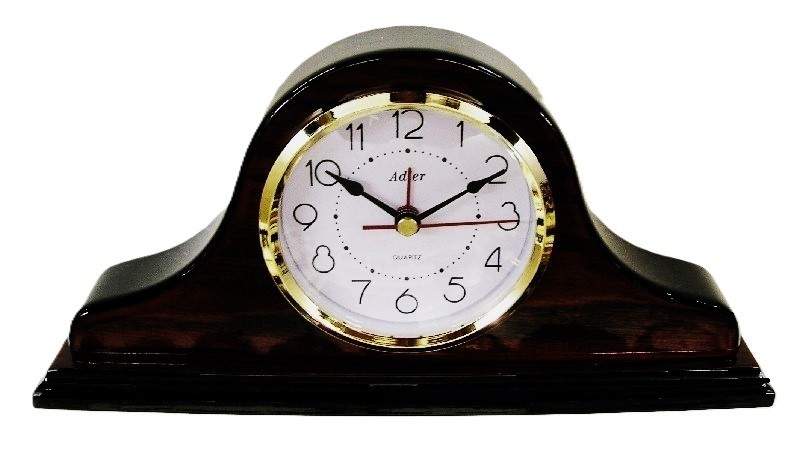 Het donkernoten tafelklok heeft een quartz uurwerk met wekkerwerk (eenvoudig te bedienen). De wijzers worden beschermd door een bol glas met messing rand. Inclusief gratis batterij.