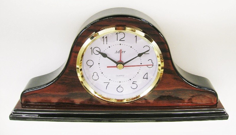 Het hoogglans noten tafelklok heeft een quartz uurwerk met wekkerwerk (eenvoudig te bedienen). De wijzers worden beschermd door een bol glas met messing rand. Inclusief gratis batterij.